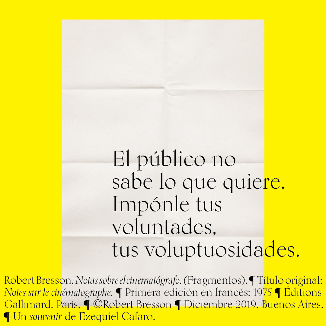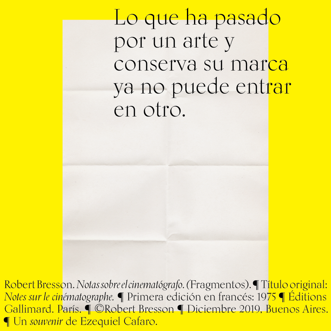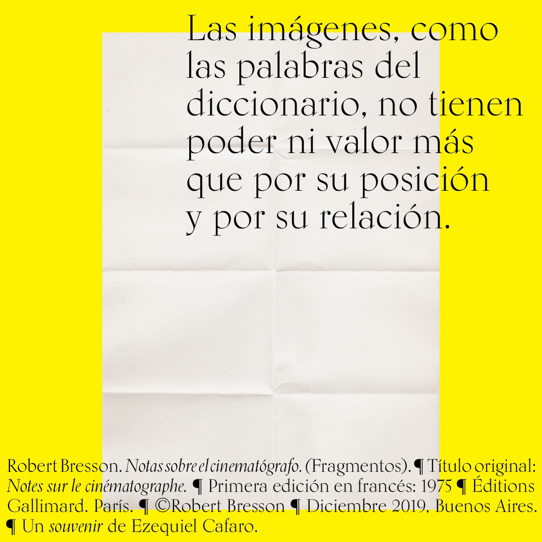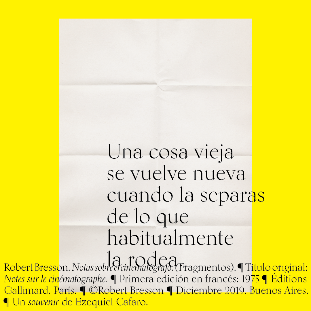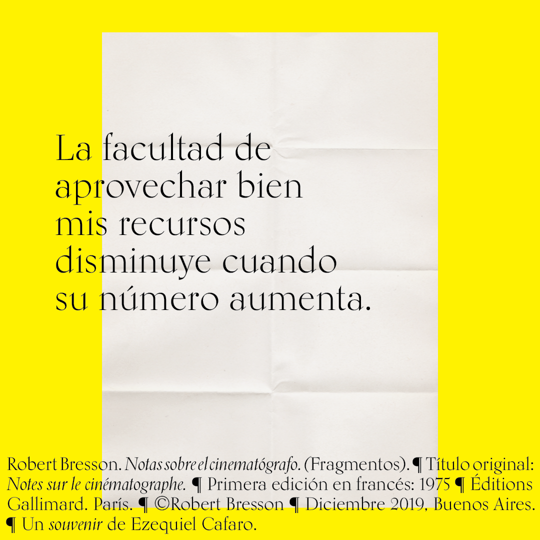 Souvenir digital e impreso para mis alumnos de distintas facultades y materias. Fragmentos del libro «Notas sobre el conematógrafo» de Robert Bresson.