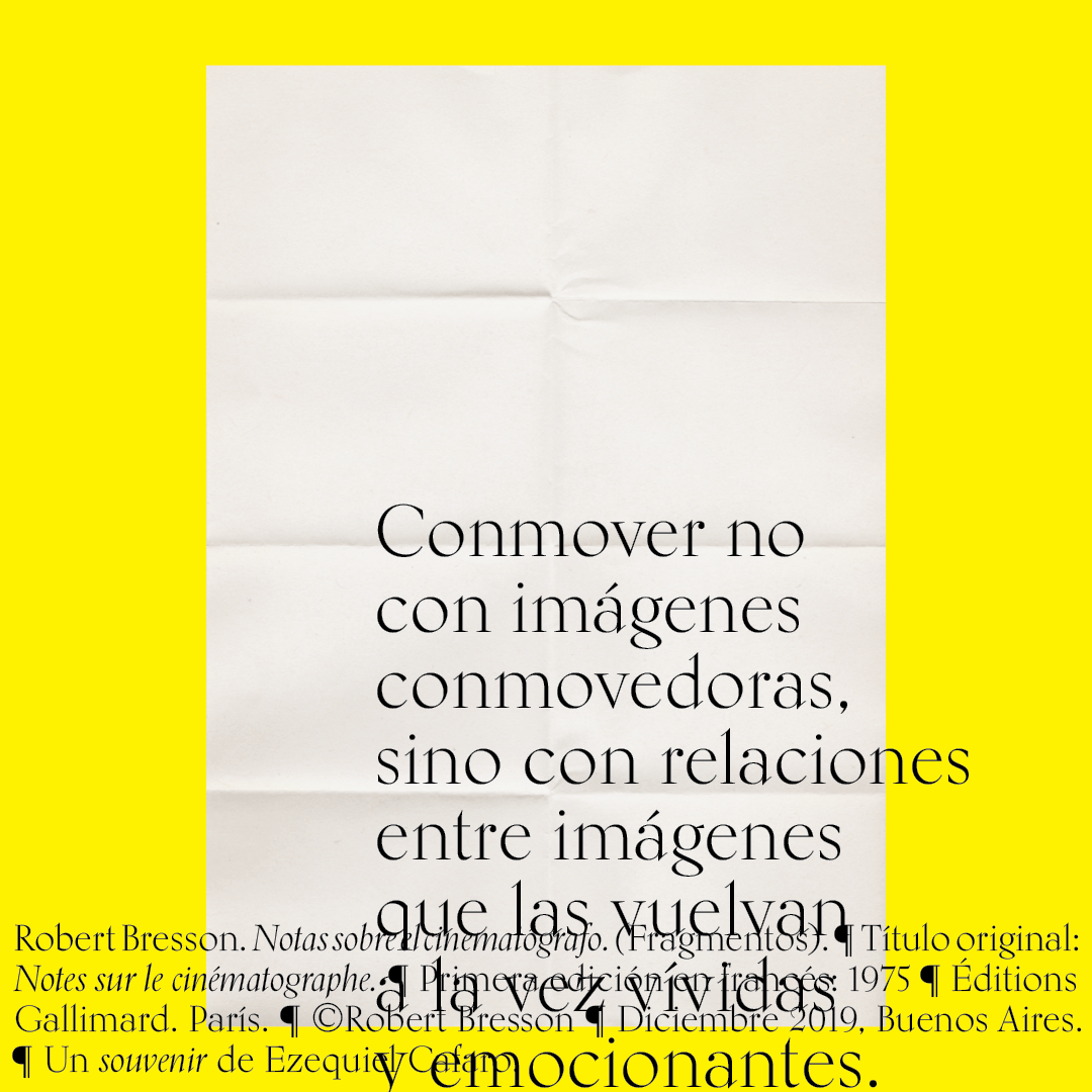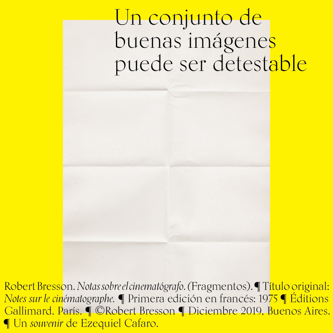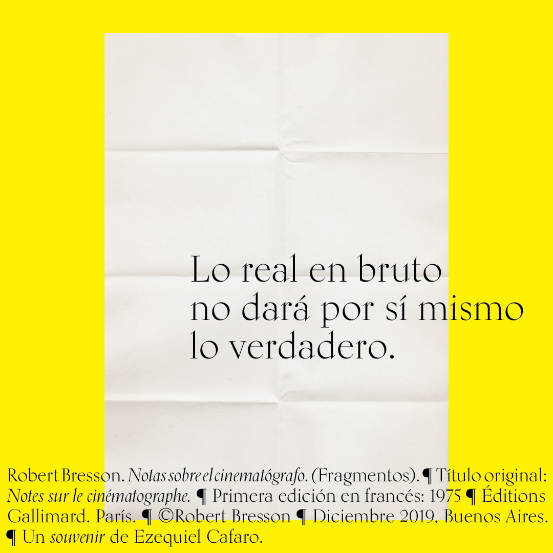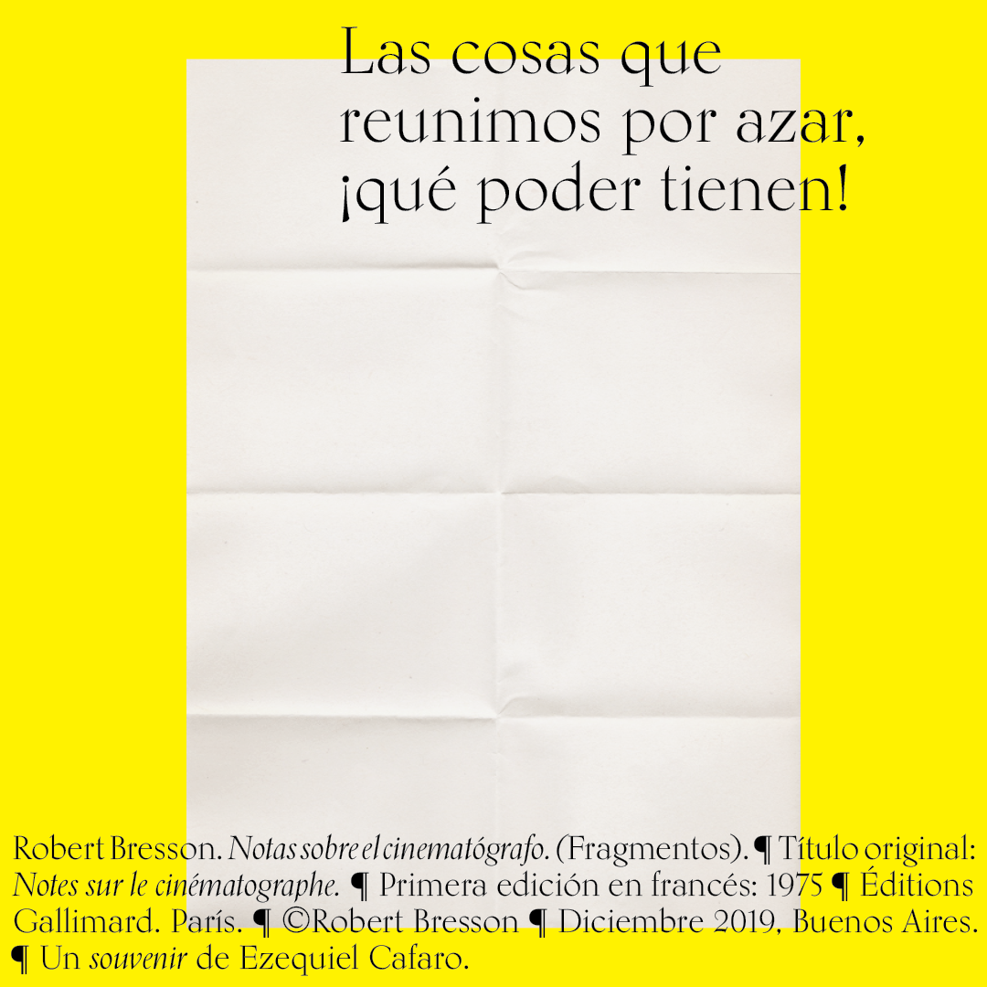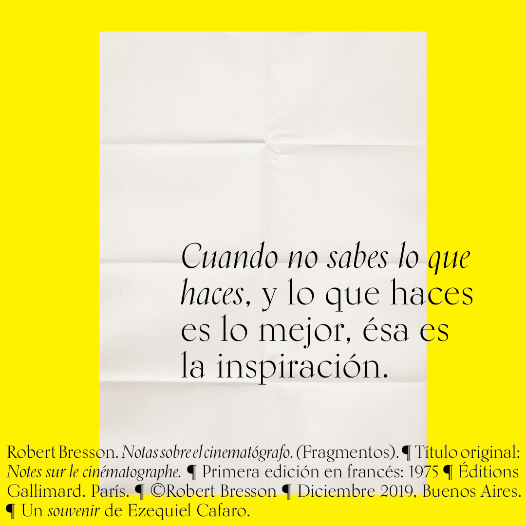 Souvenir digital e impreso para mis alumnos de distintas facultades y materias. Fragmentos del libro «Notas sobre el conematógrafo» de Robert Bresson.