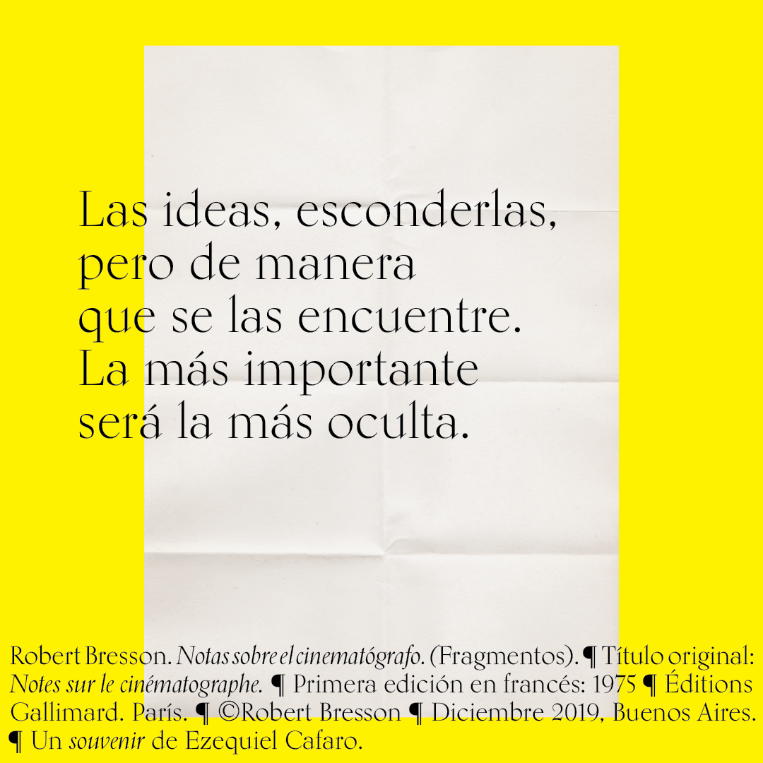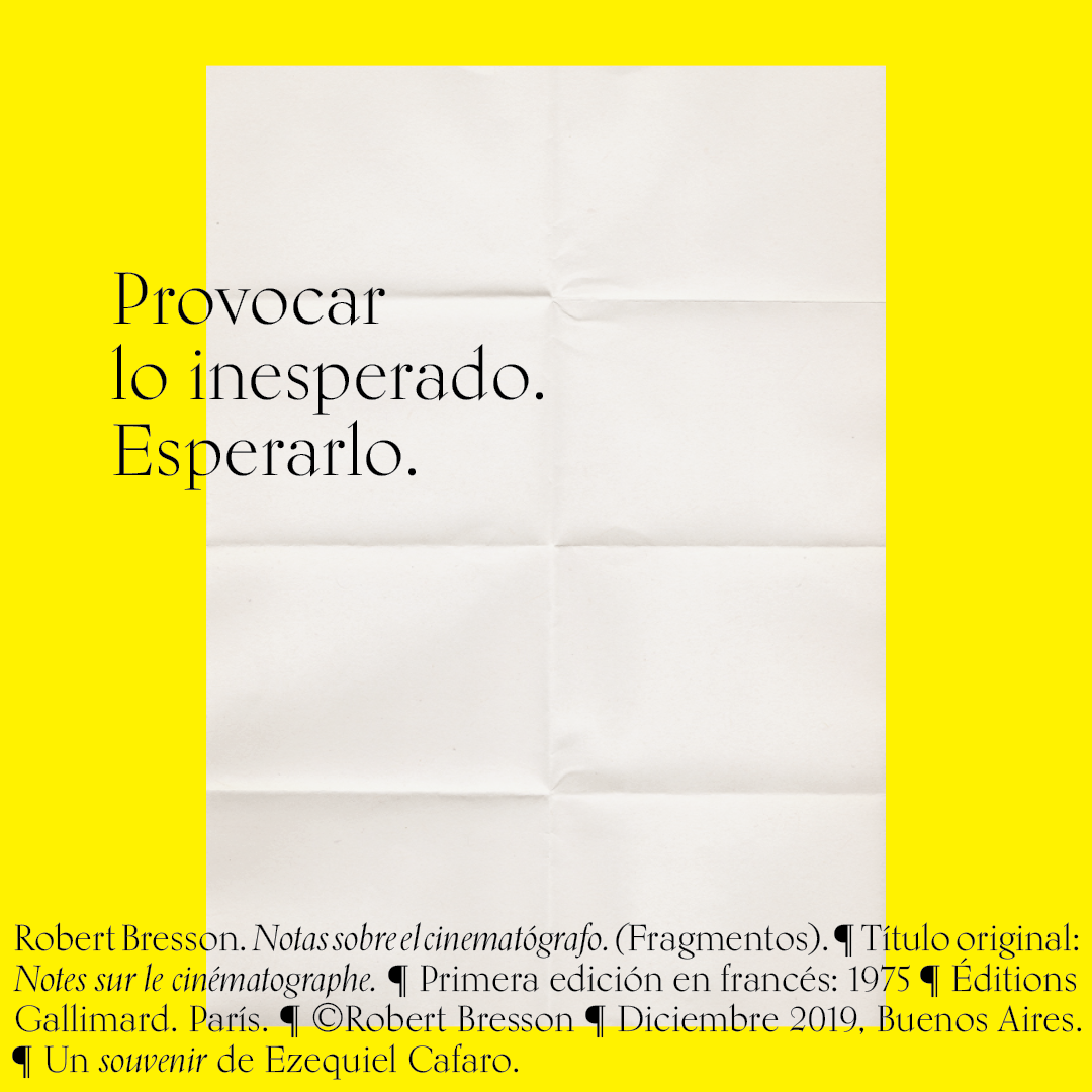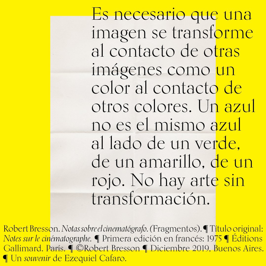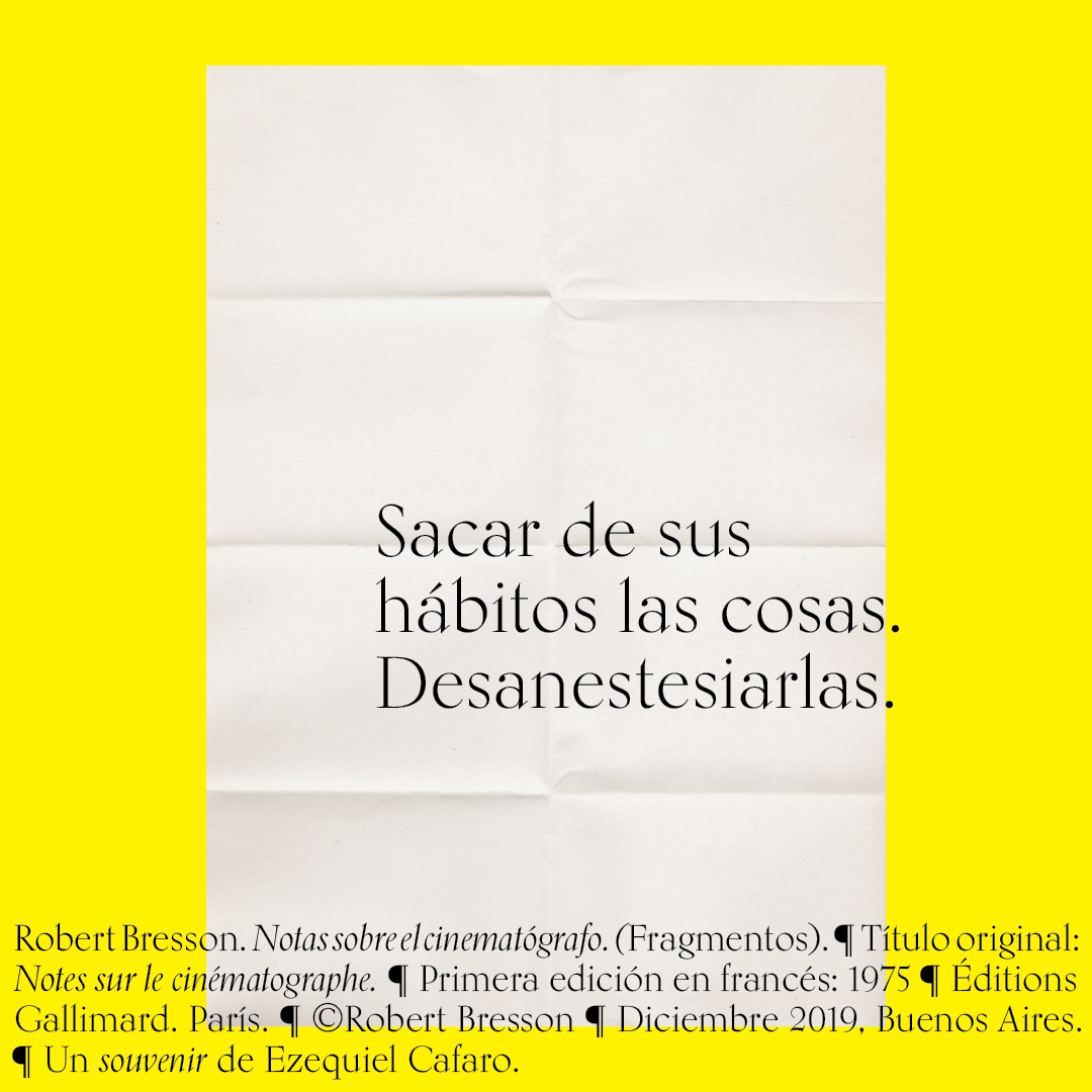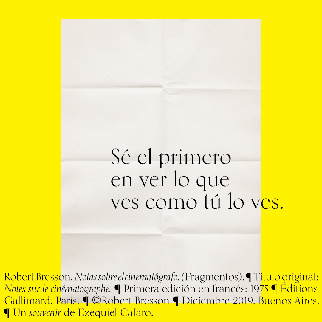 Souvenir digital e impreso para mis alumnos de distintas facultades y materias. Fragmentos del libro «Notas sobre el conematógrafo» de Robert Bresson.