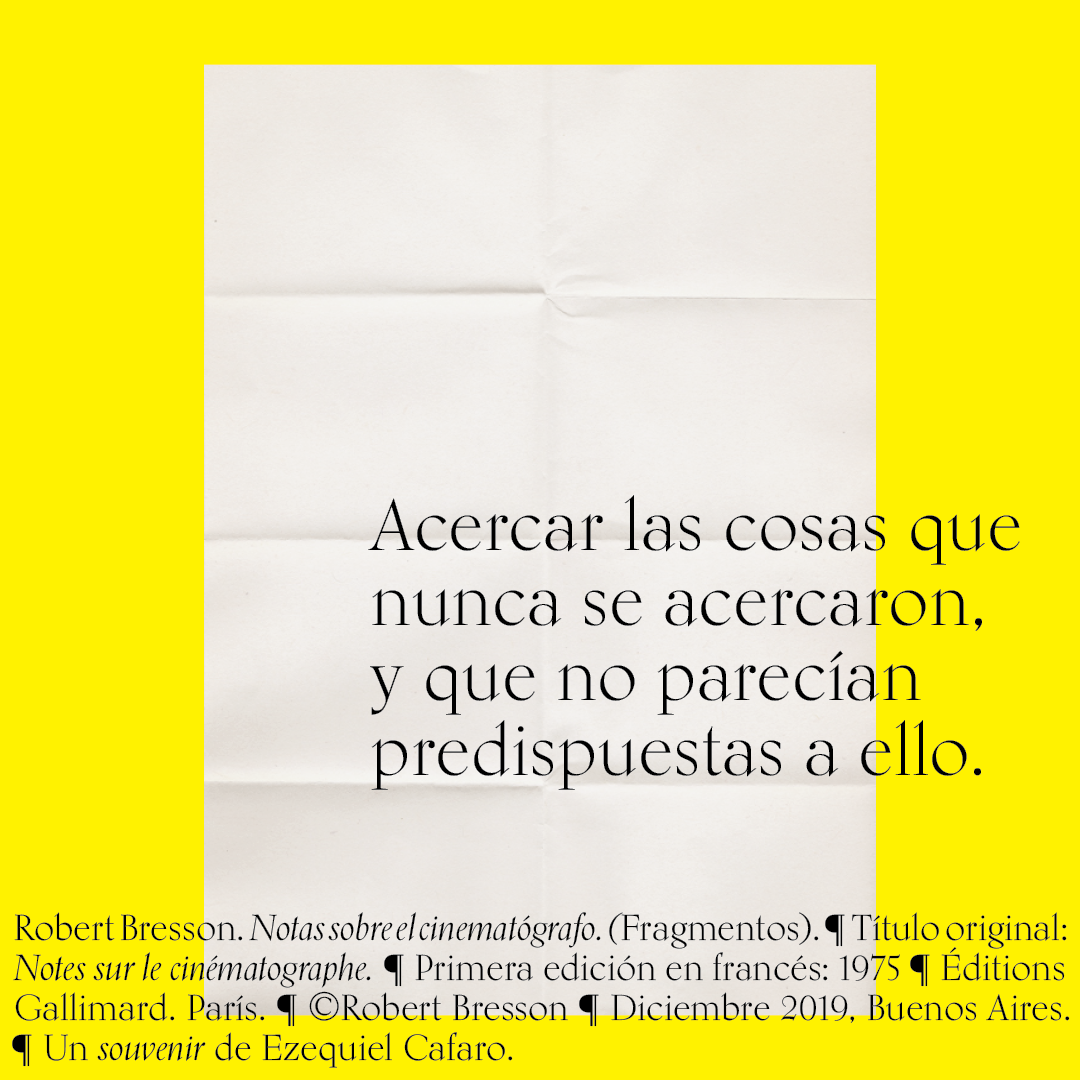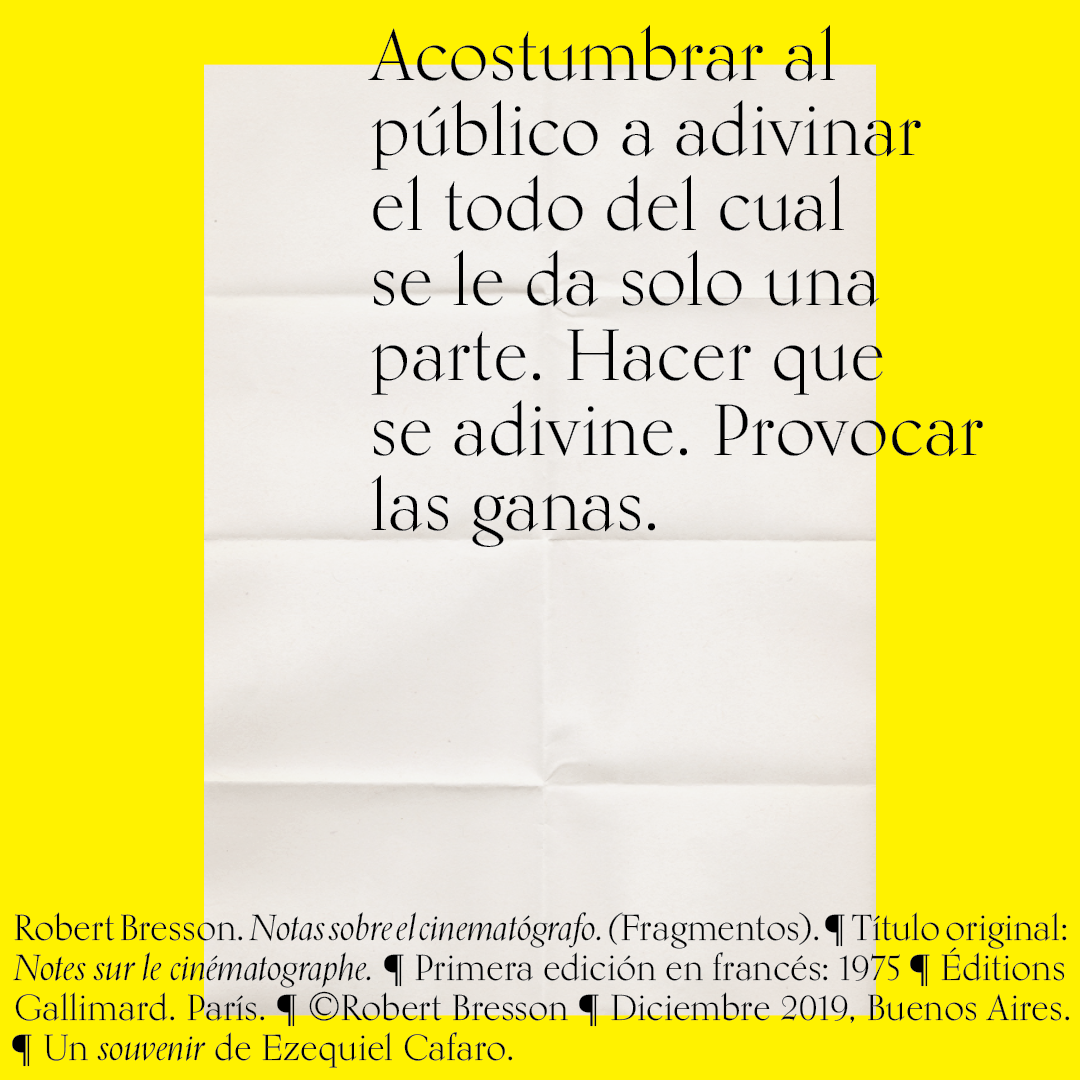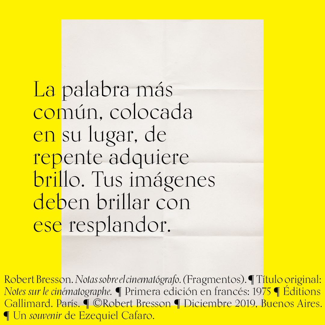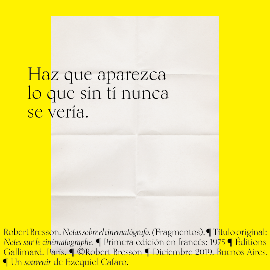 Souvenir digital e impreso para mis alumnos de distintas facultades y materias. Fragmentos del libro «Notas sobre el conematógrafo» de Robert Bresson.