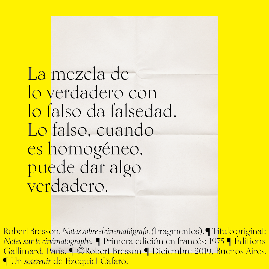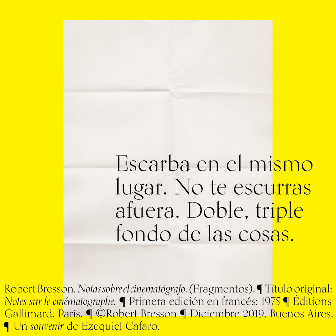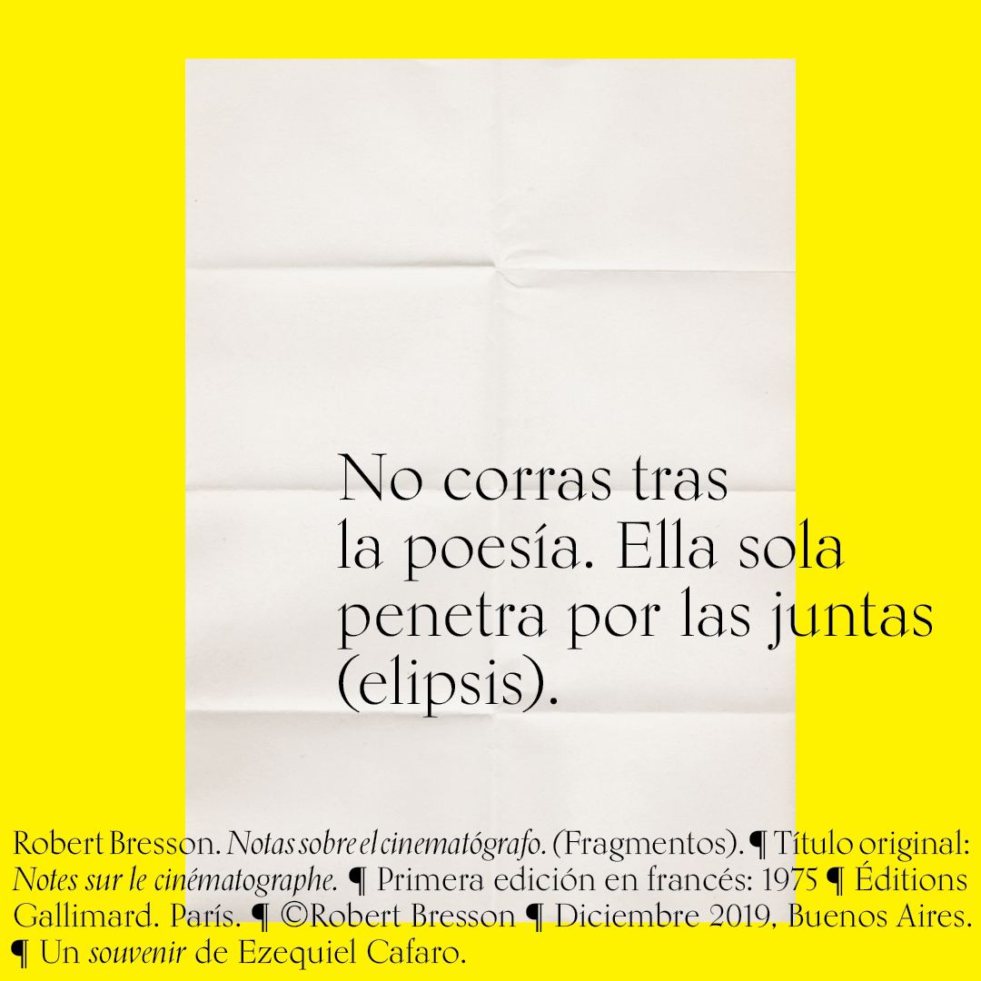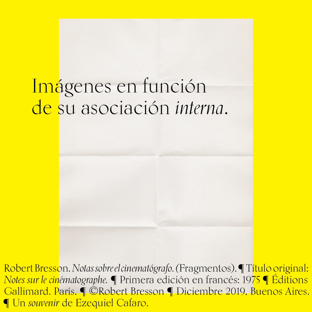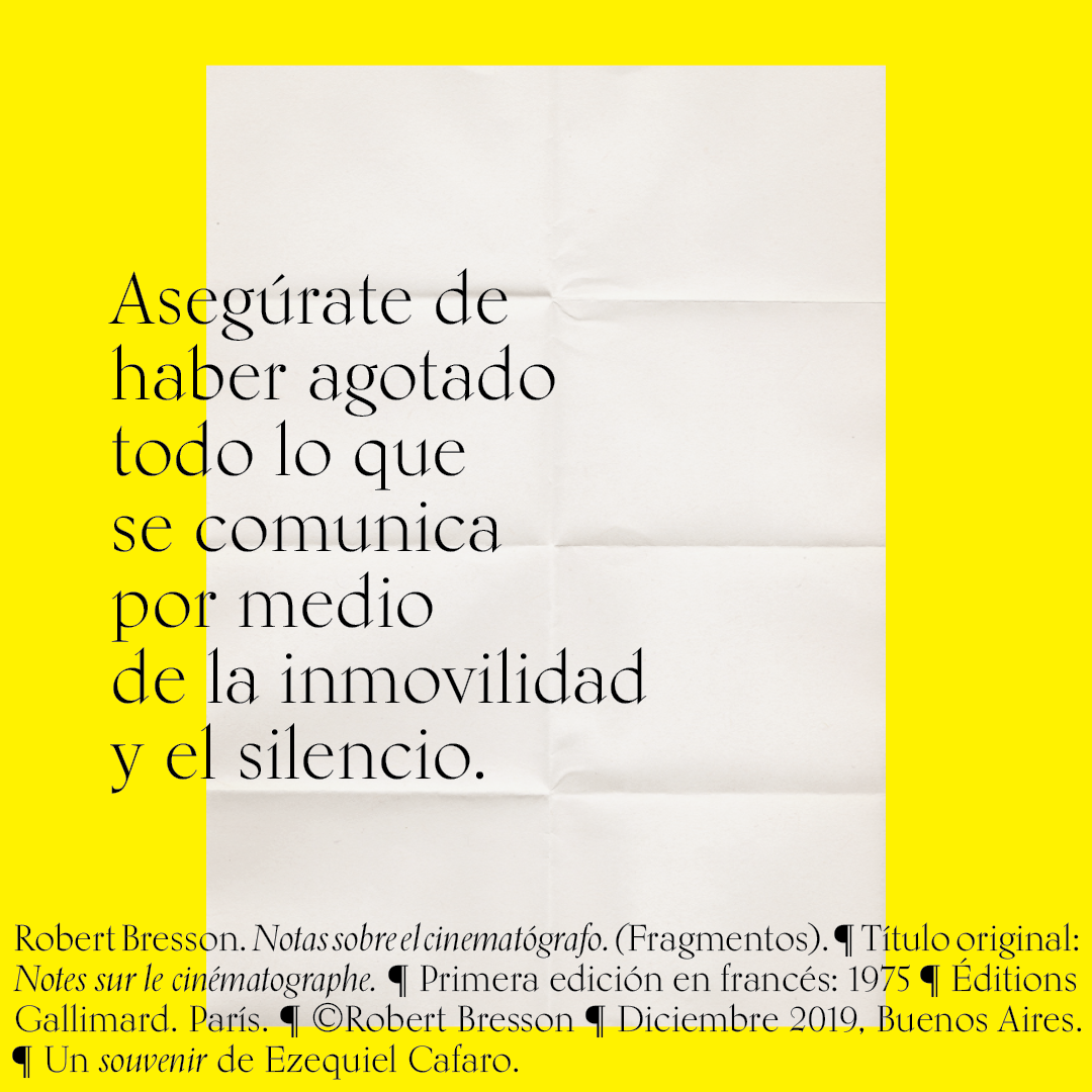 Souvenir digital e impreso para mis alumnos de distintas facultades y materias. Fragmentos del libro «Notas sobre el conematógrafo» de Robert Bresson.