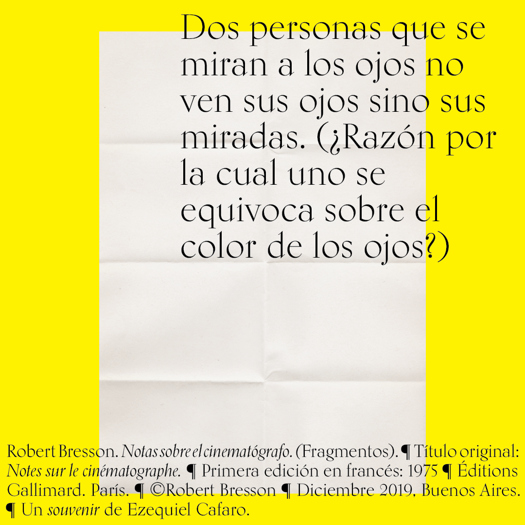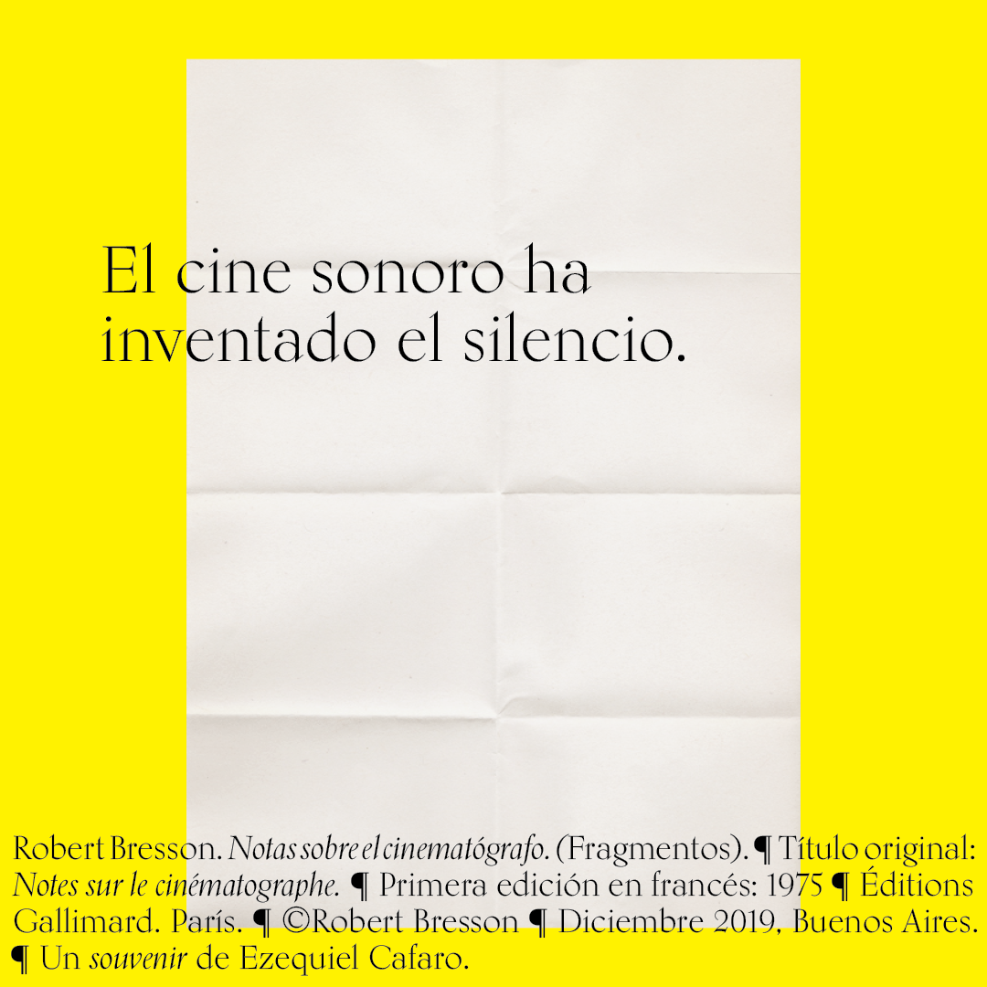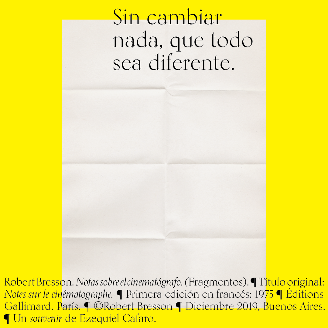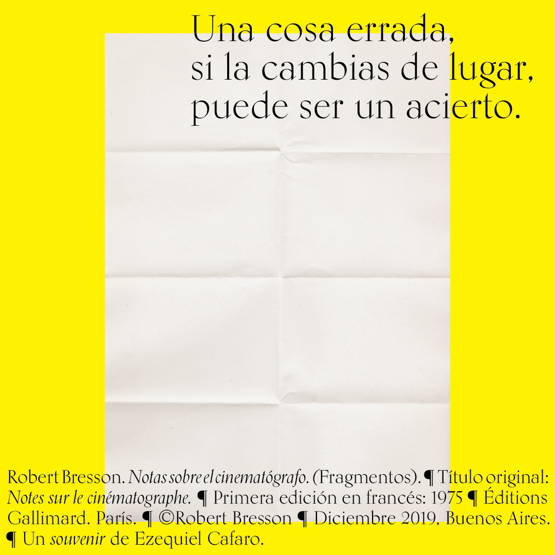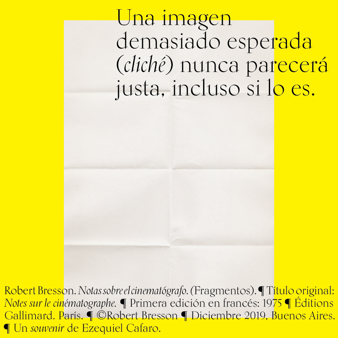Souvenir digital e impreso para mis alumnos de distintas facultades y materias. Fragmentos del libro «Notas sobre el conematógrafo» de Robert Bresson.