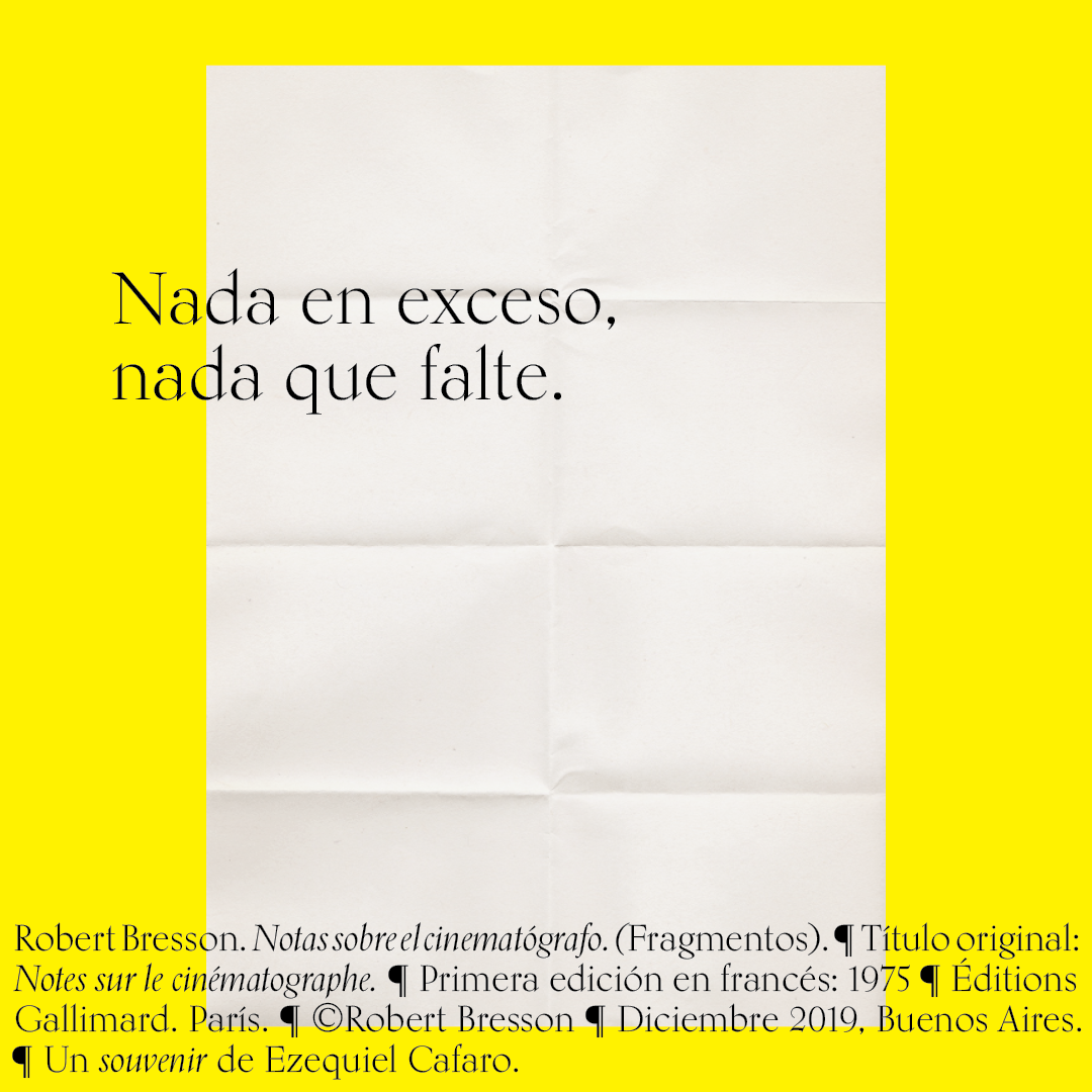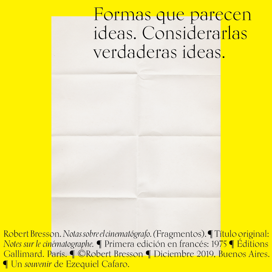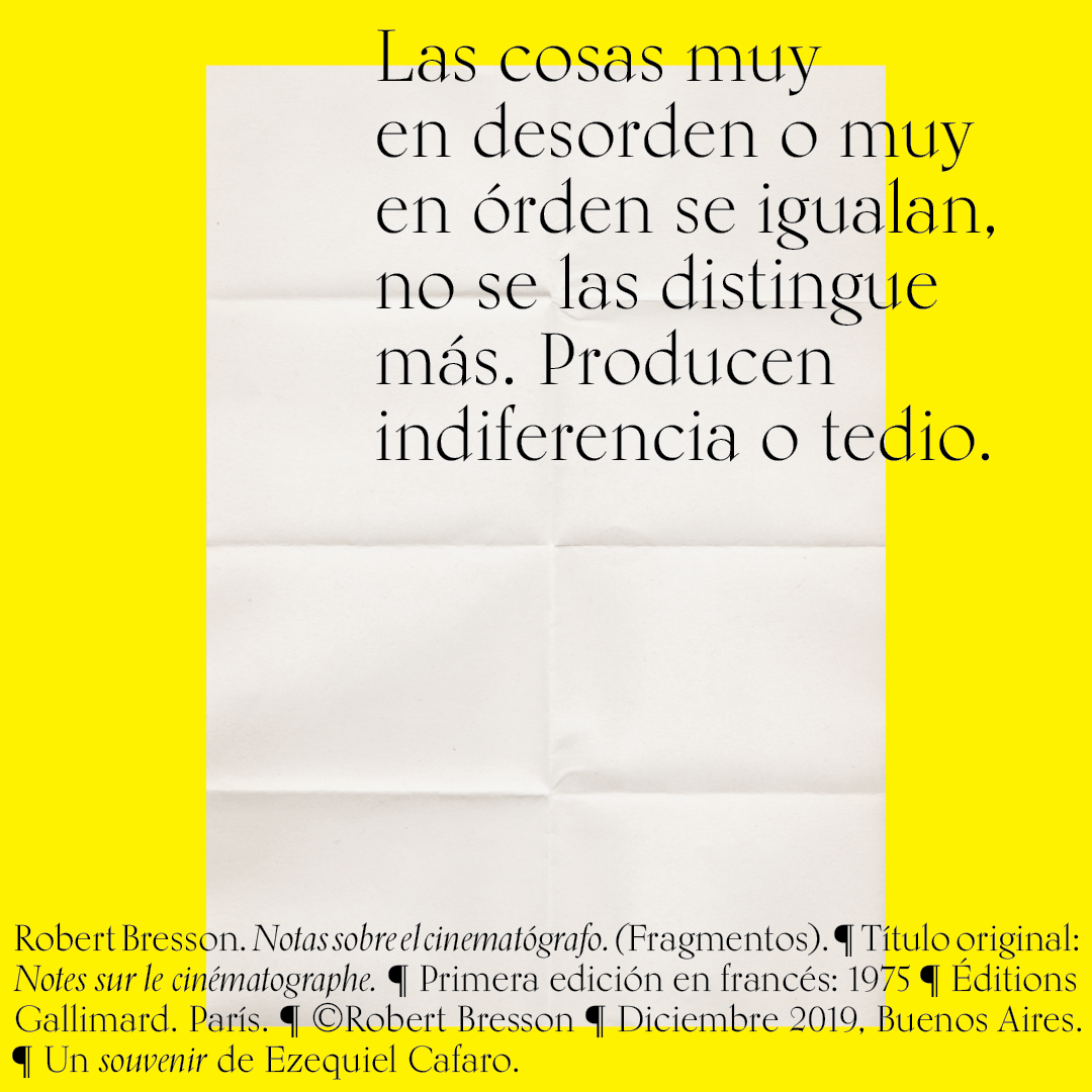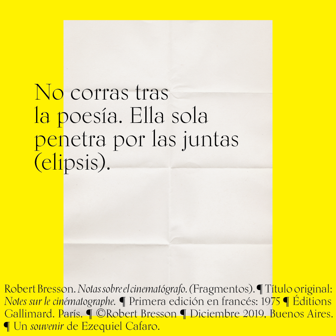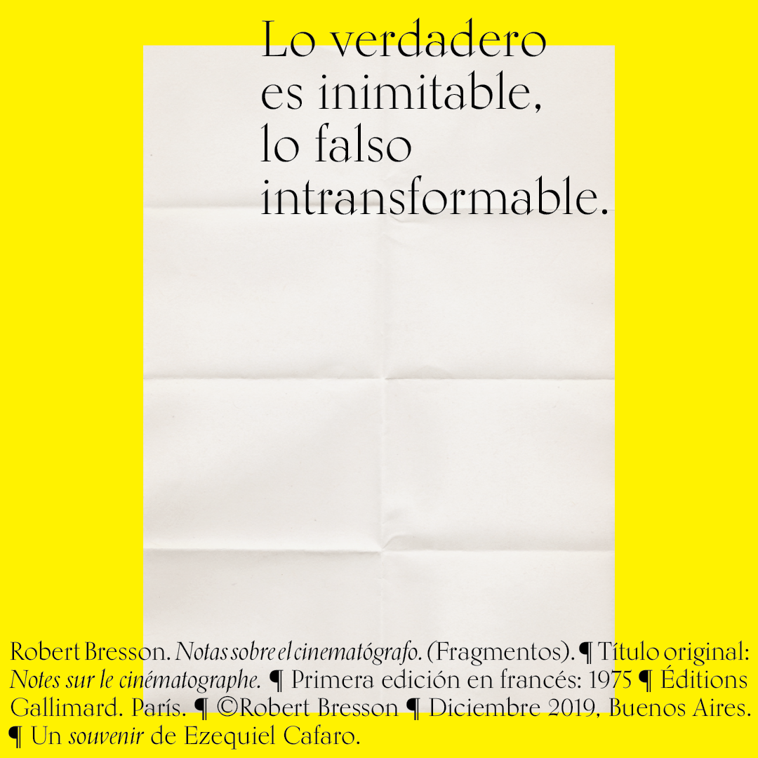Souvenir digital e impreso para mis alumnos de distintas facultades y materias. Fragmentos del libro «Notas sobre el conematógrafo» de Robert Bresson.