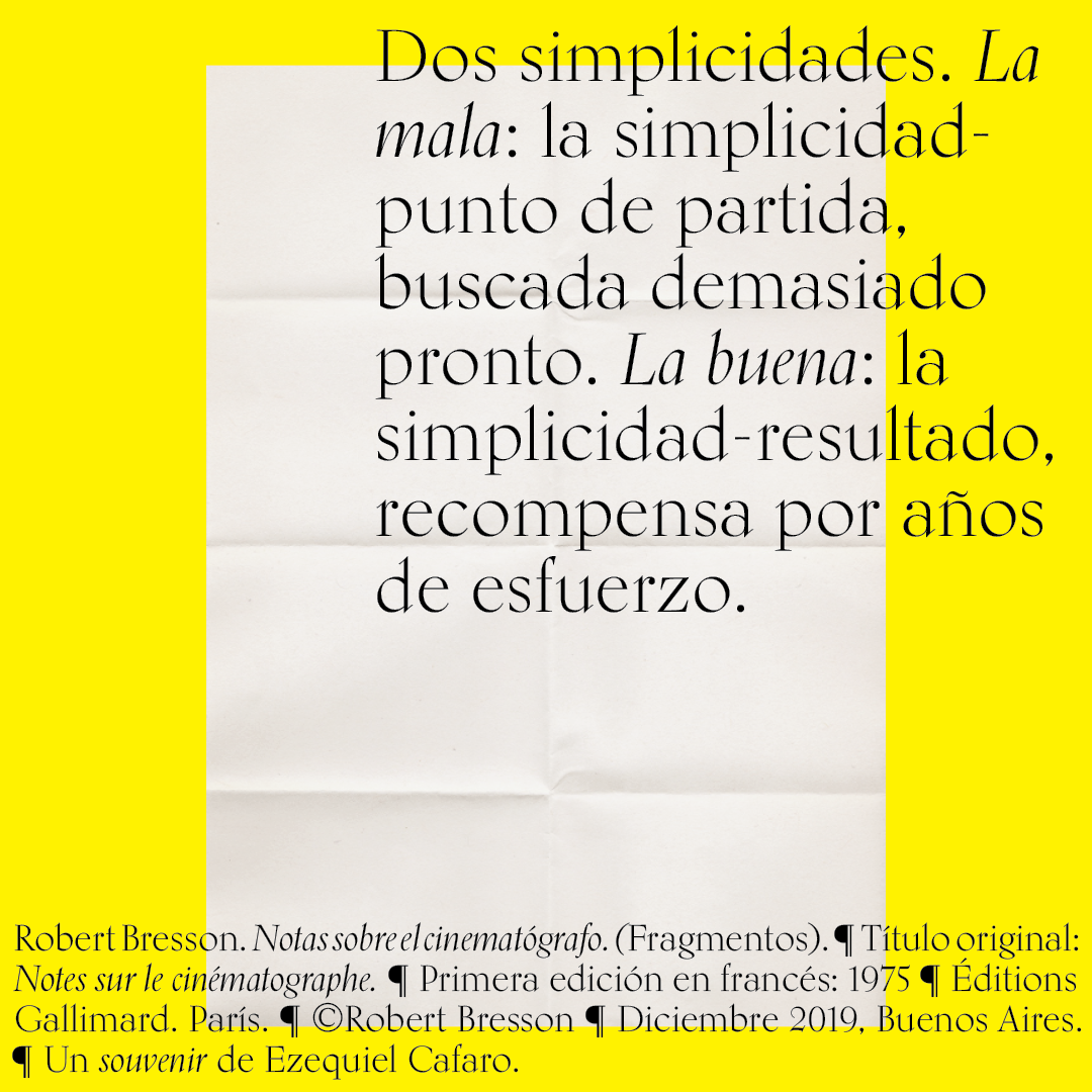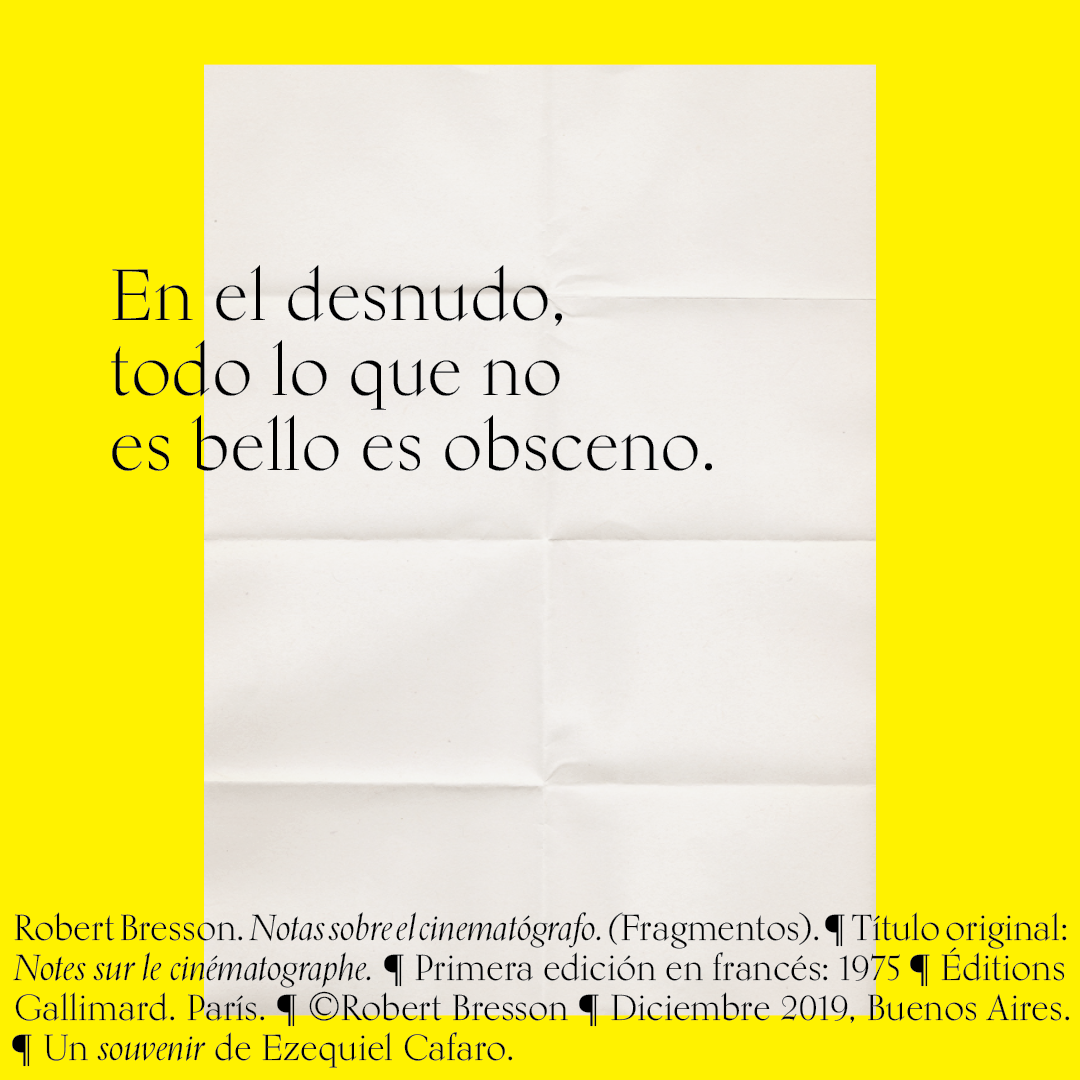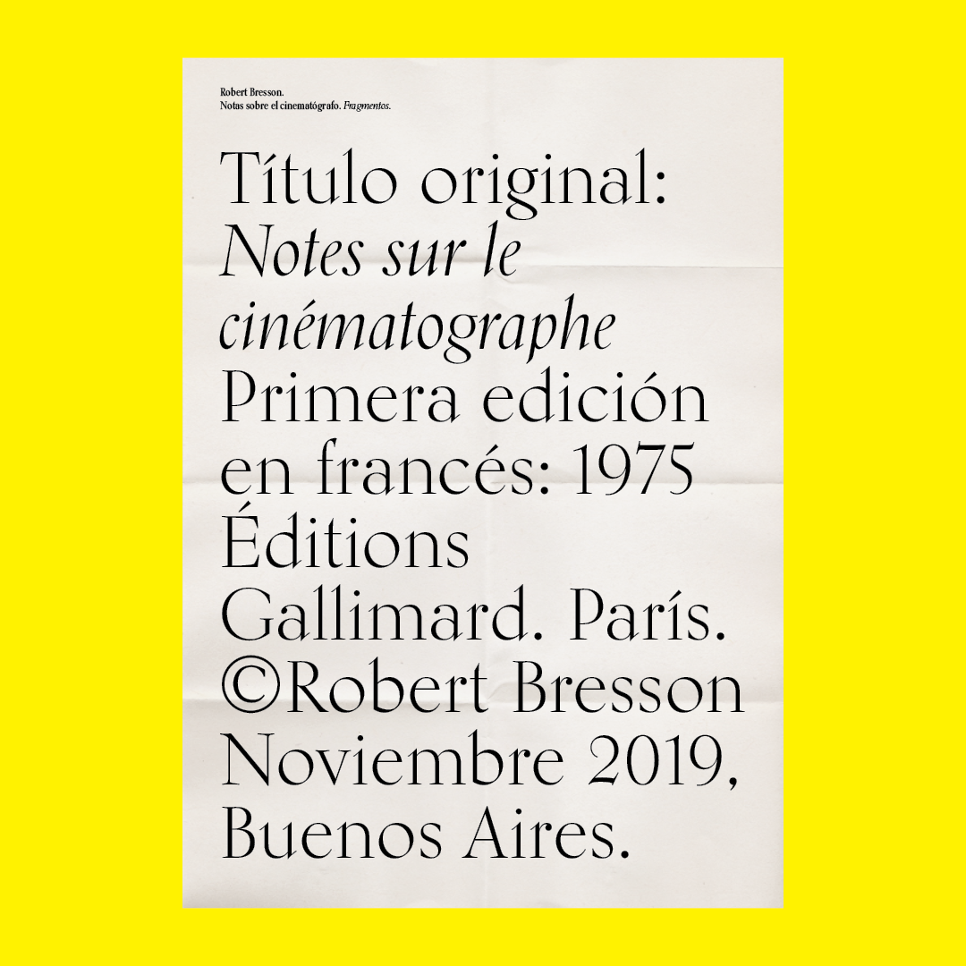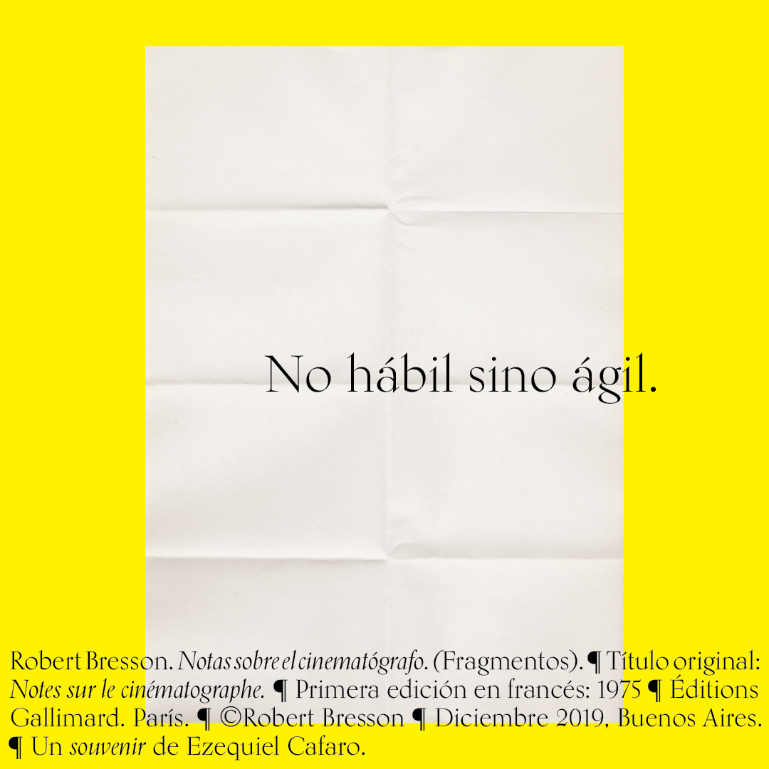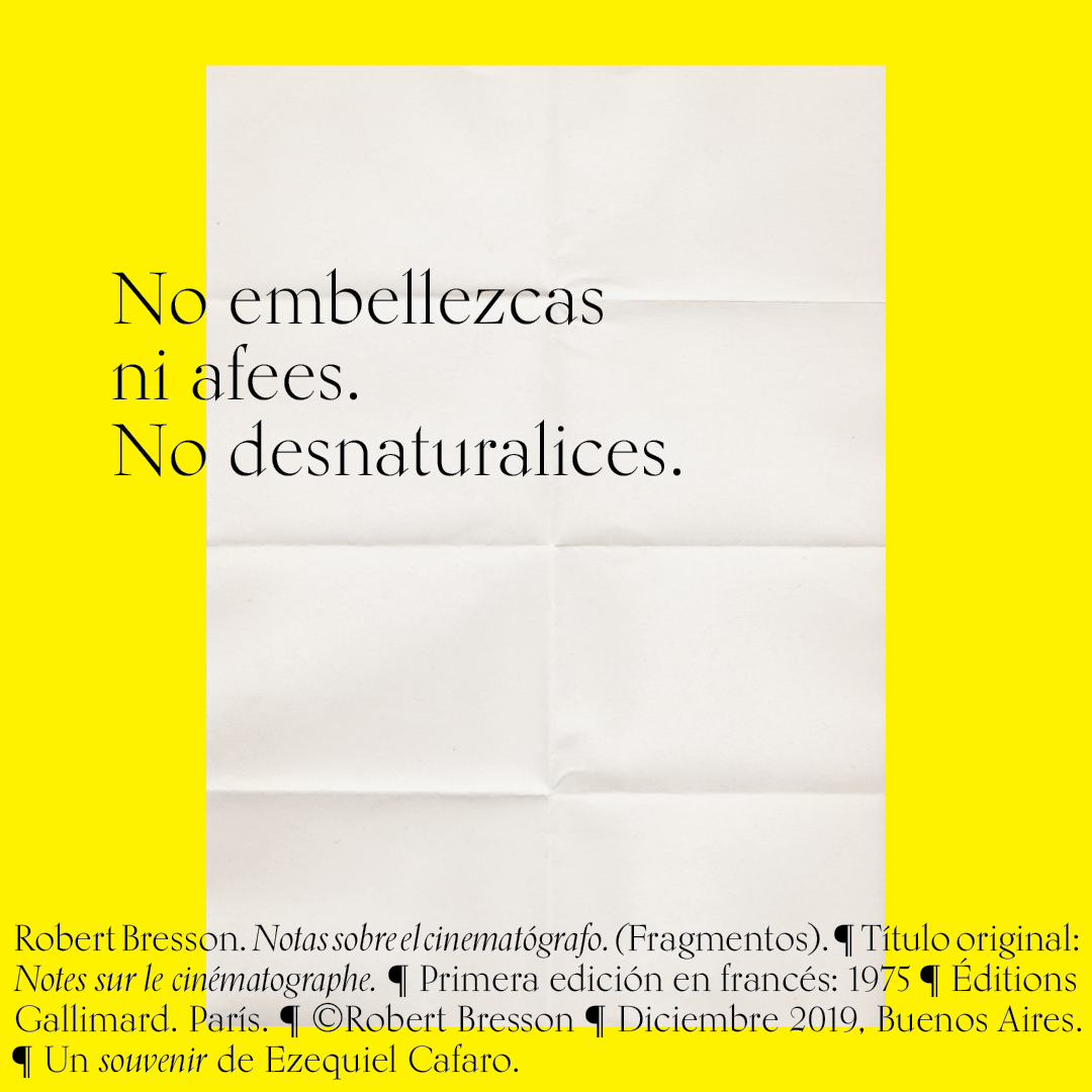 Souvenir digital e impreso para mis alumnos de distintas facultades y materias. Fragmentos del libro «Notas sobre el conematógrafo» de Robert Bresson.